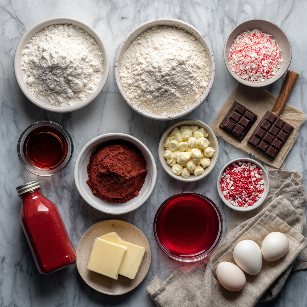 - ¼ cup Unsweetened Cocoa Powder: Crucial: Do not use Dutch-process. Natural cocoa powder is lighter and allows the red color to show through better.