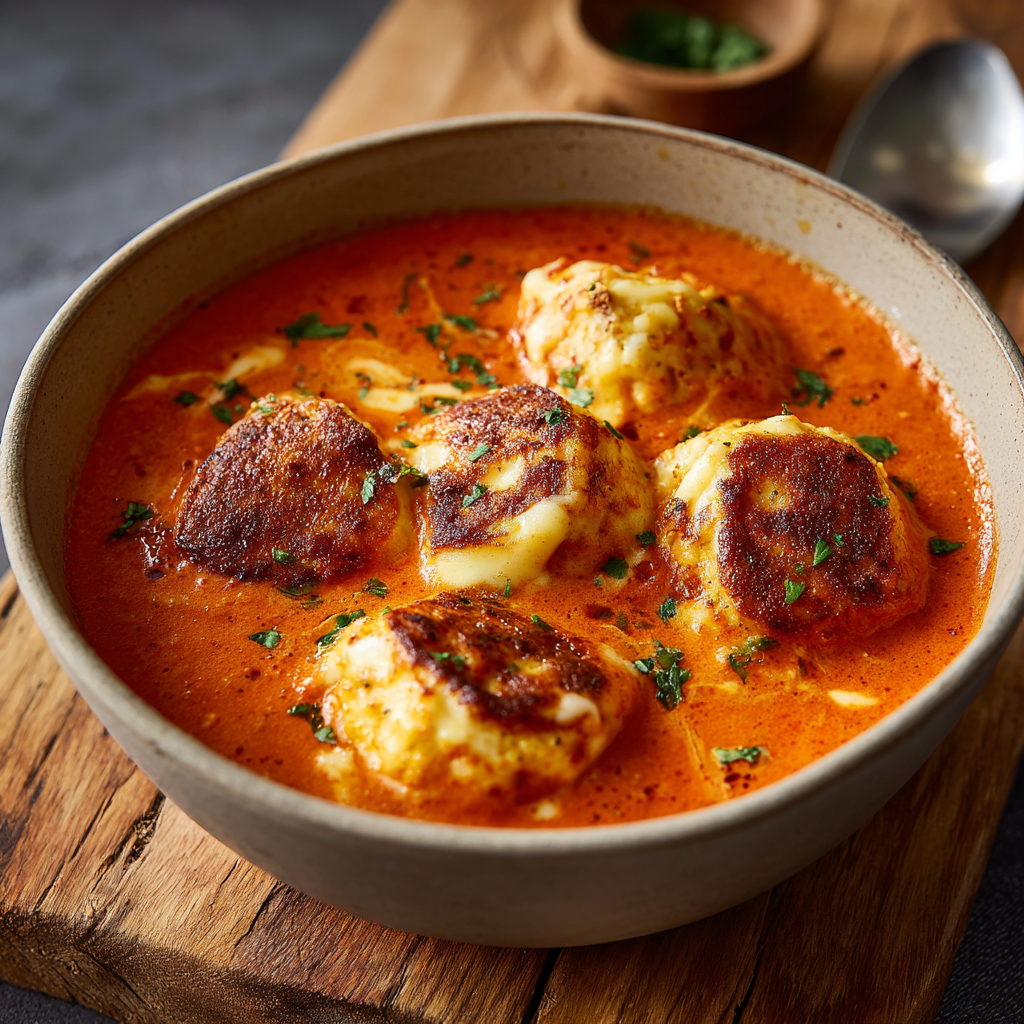 There’s something deeply comforting about a warm bowl of tomato soup — rich, smooth, and gently tangy. But when you add soft, fluffy cheese dumplings that melt just enough to become creamy pillows of flavor… the soup transforms into a complete, satisfying meal.