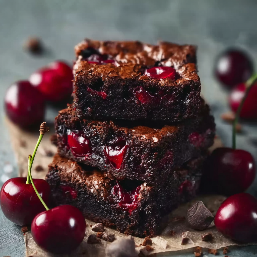 Data Insight: Dark chocolate adds antioxidants, while roasted cherries contribute natural sweetness and vitamin C, making these brownies slightly more nutrient-dense than typical chocolate desserts.