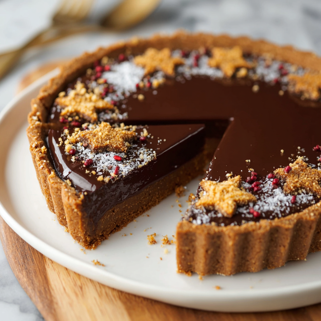 This recipe for Vegan Gingerbread Chocolate Tart is the intersection of two winter powerhouses: the spicy warmth of gingerbread and the creamy luxury of dark chocolate ganache. It challenges the misconception that vegan desserts are dry or rely on strange substitutes. By utilizing the natural fats in coconut milk and dark chocolate, we create a filling that is scientifically indistinguishable from a dairy-heavy ganache. Paired with a nutty, molasses-spiked press-in crust, this tart is gluten-free, dairy-free, and requires zero rolling pins. It is sophisticated, glossy, and undeniably festive.